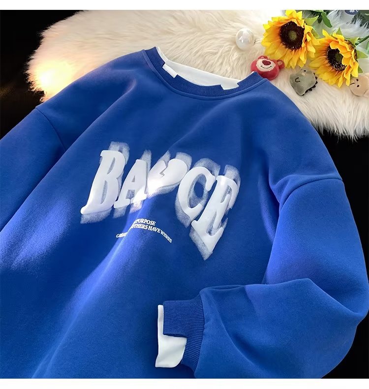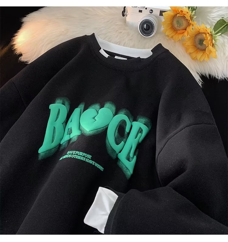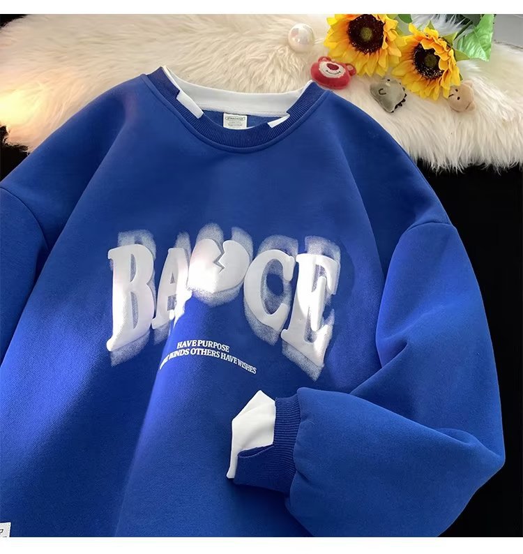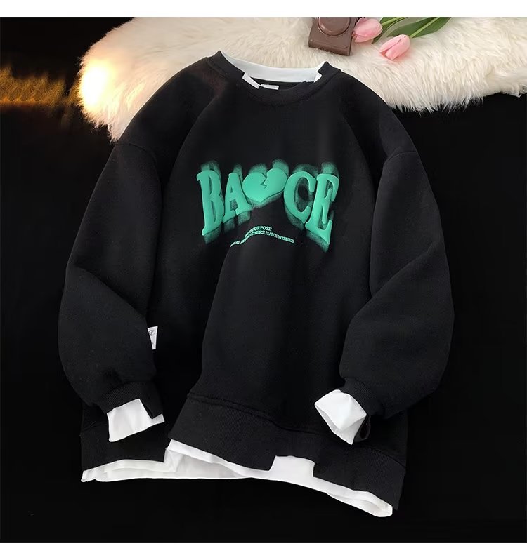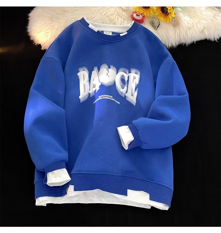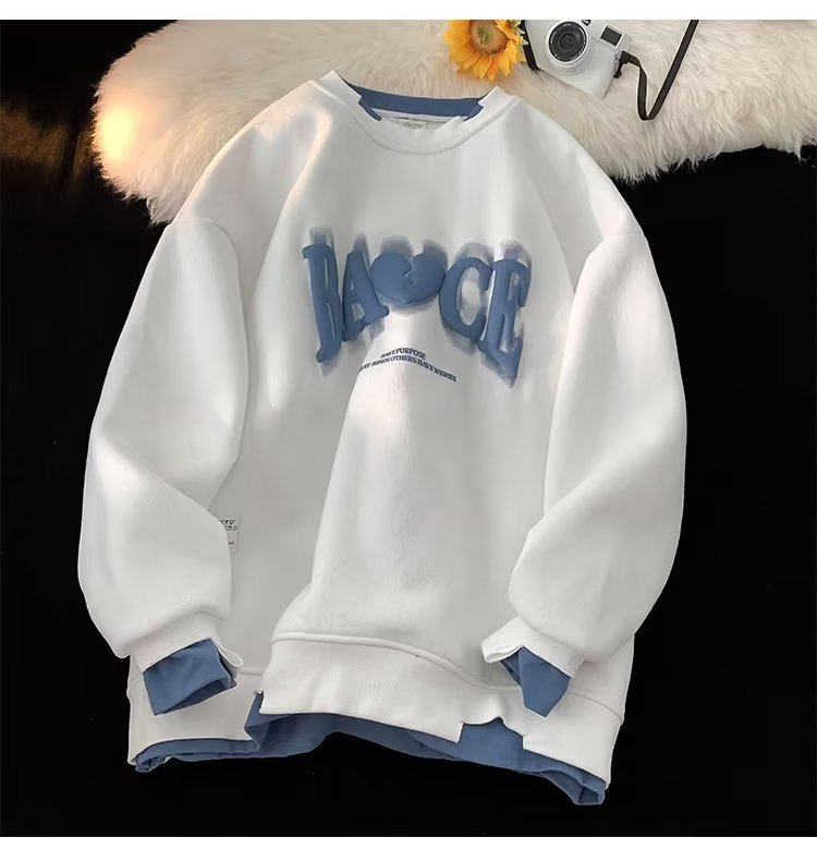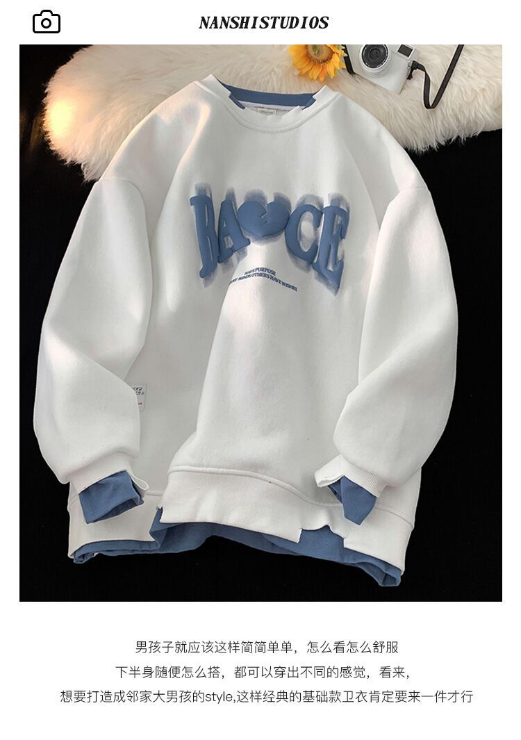 假两件白色卫衣男士秋冬季新款情侣装上衣服潮牌宽松oversize外套
