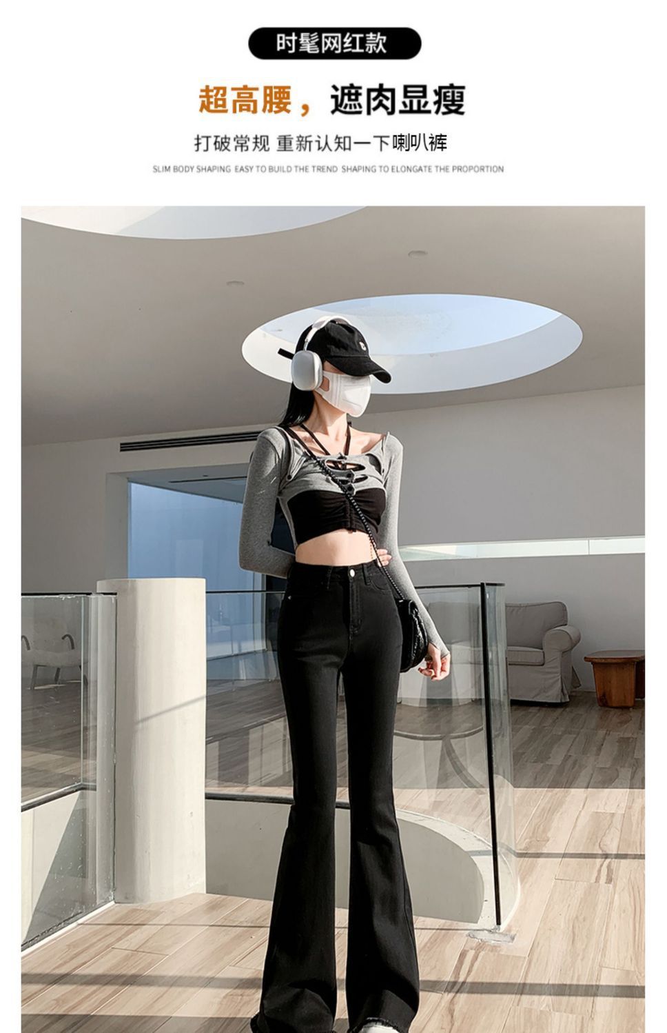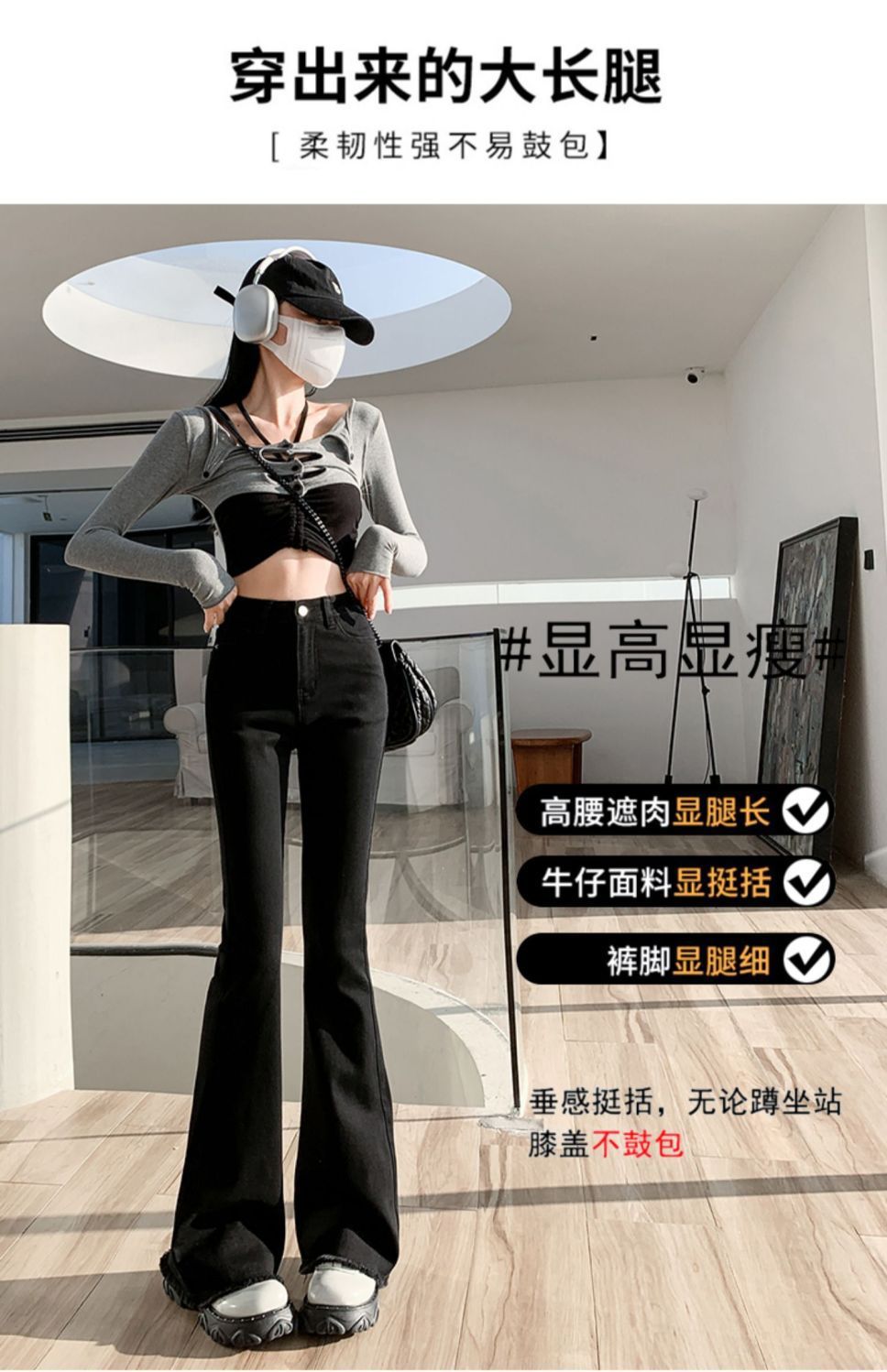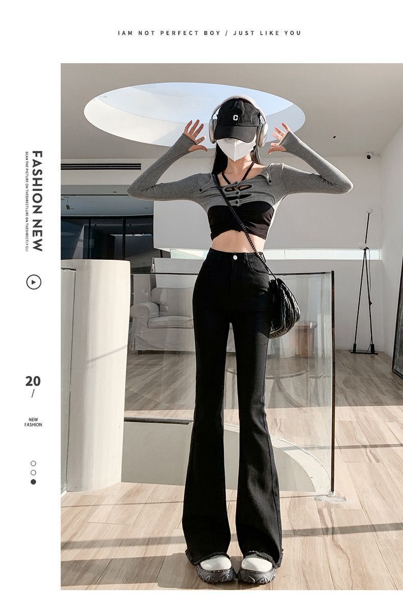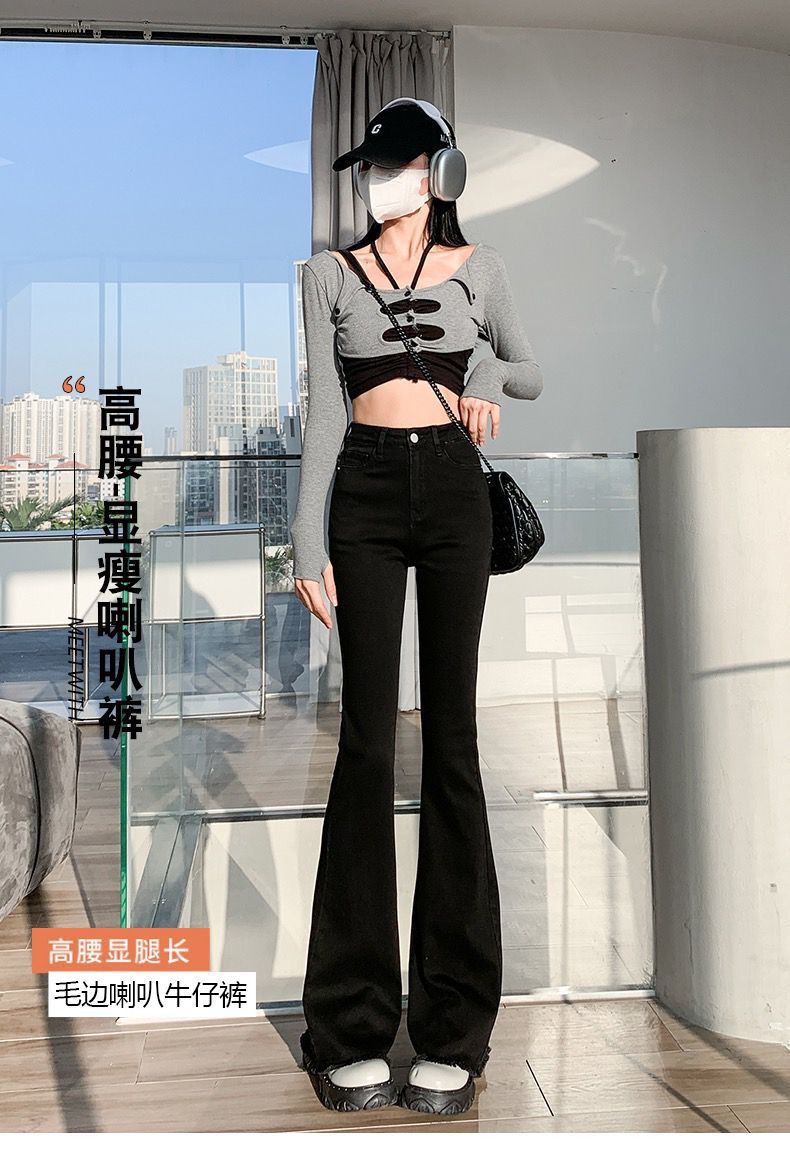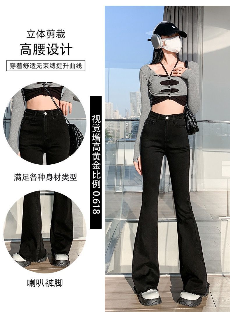 黑色微喇叭牛仔裤女高腰显瘦修身2023年春秋季新款马蹄裤子拖地裤