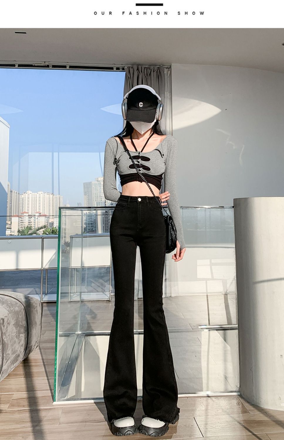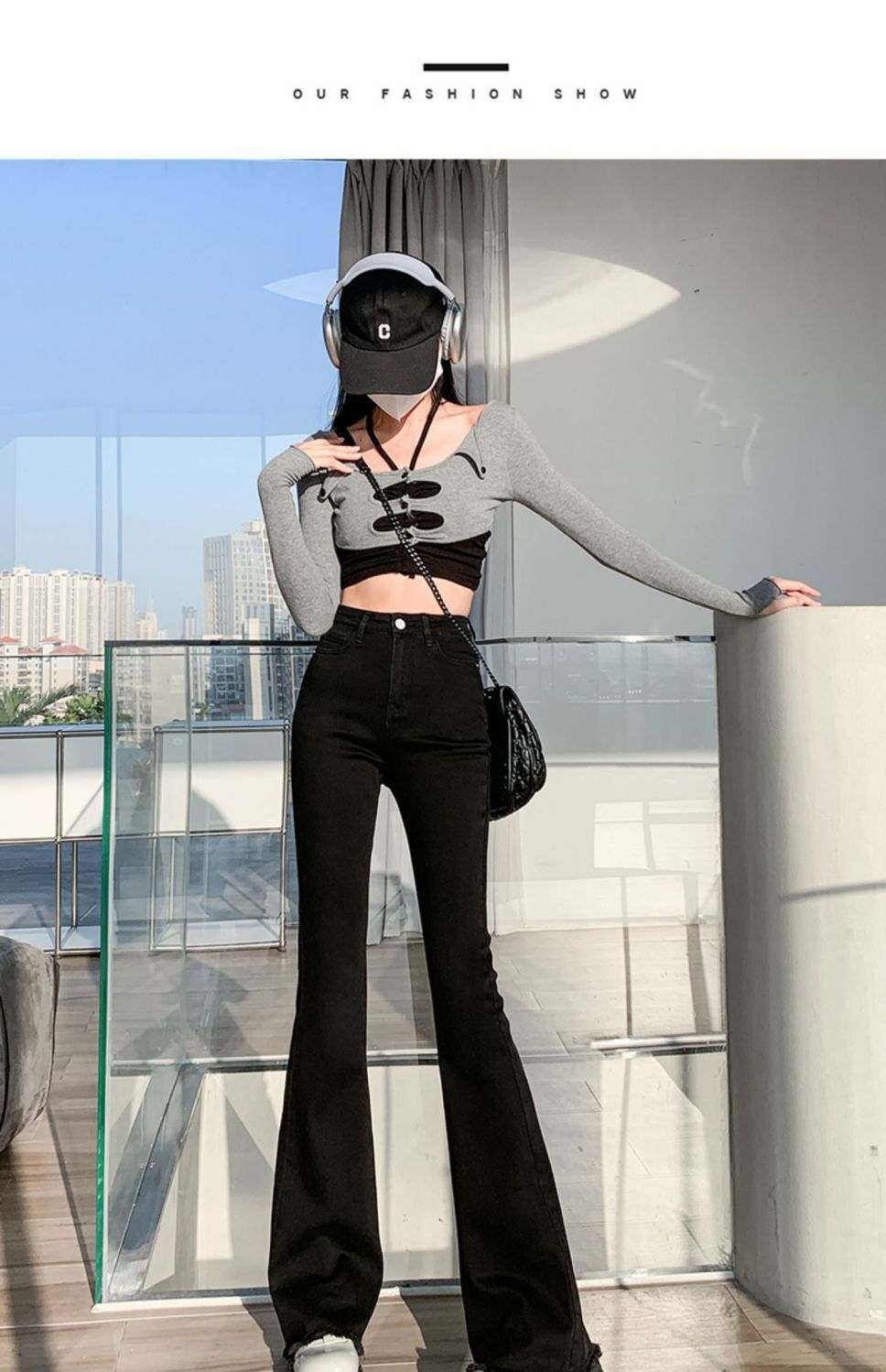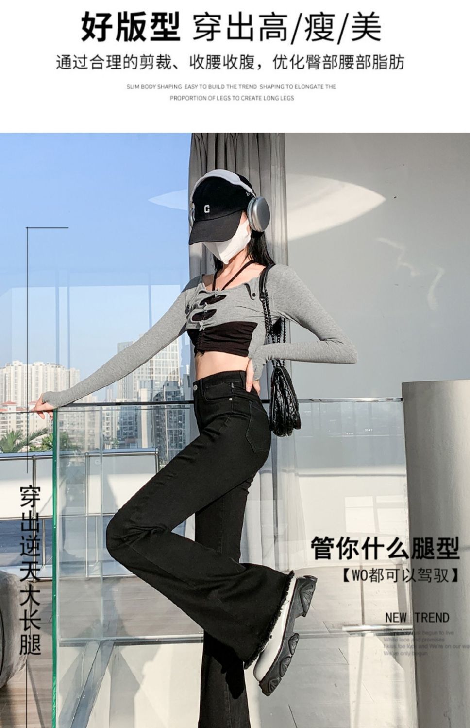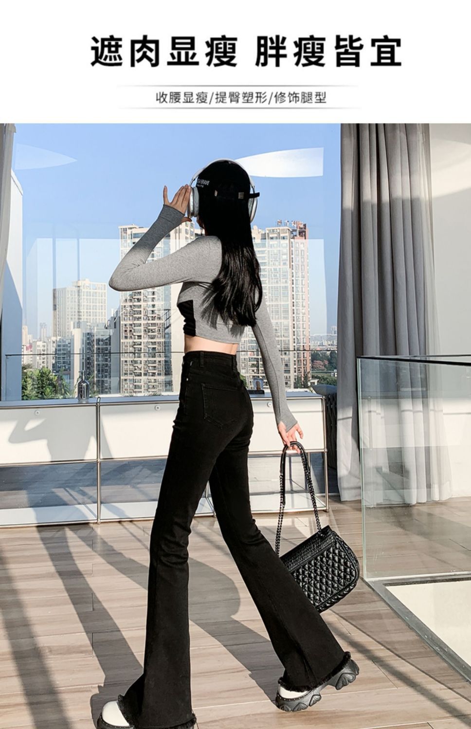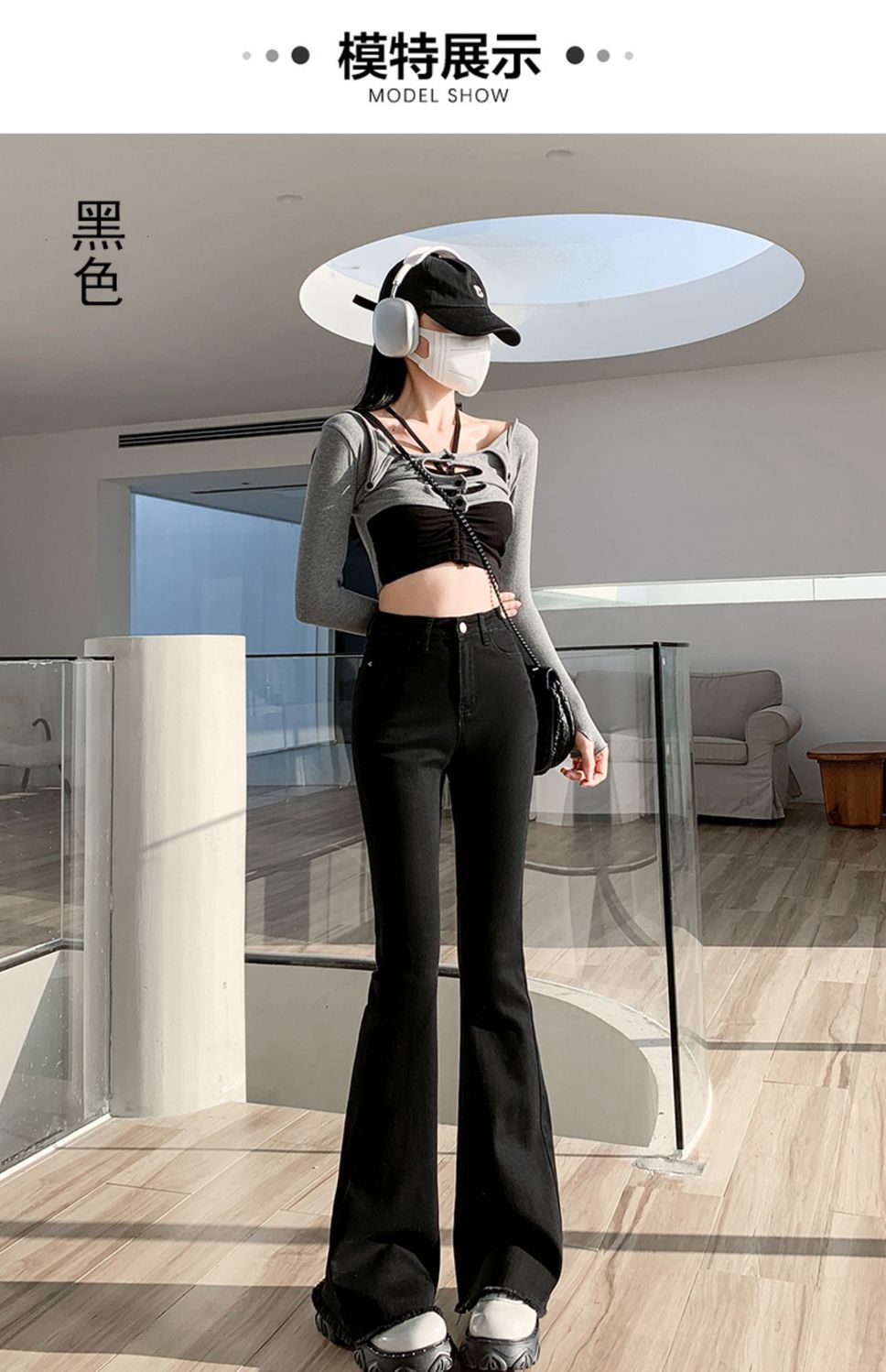 黑色微喇叭牛仔裤女高腰显瘦修身2023年春秋季新款马蹄裤子拖地裤