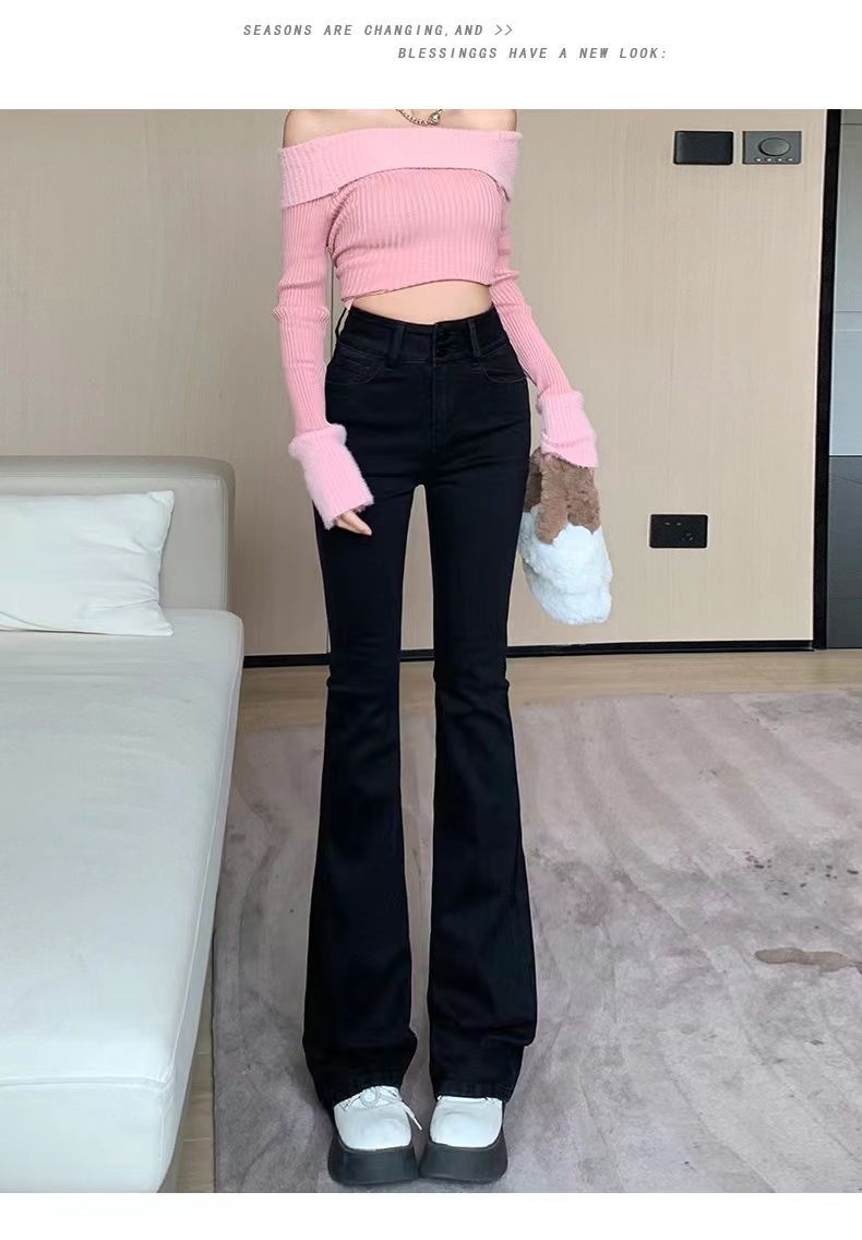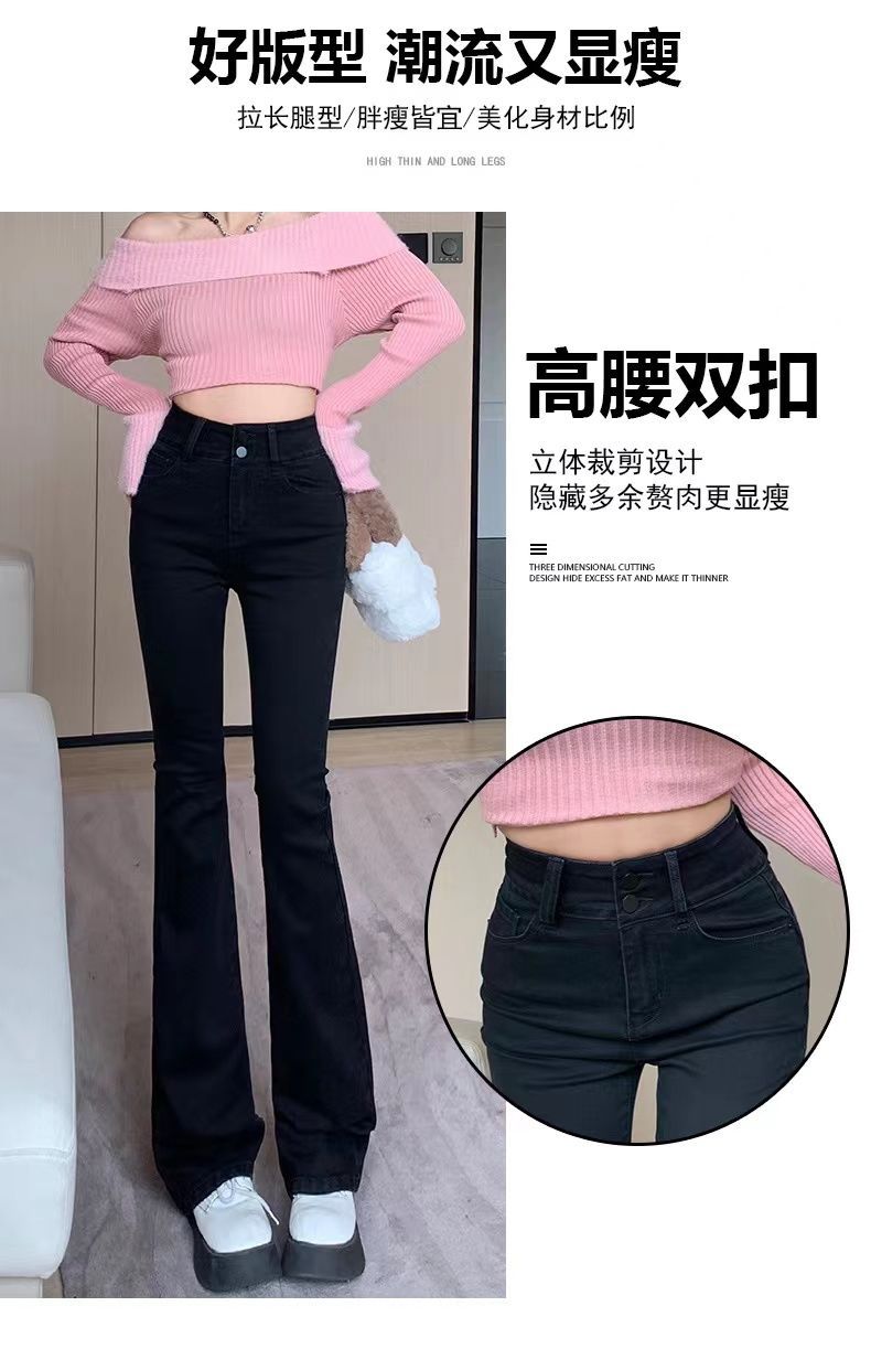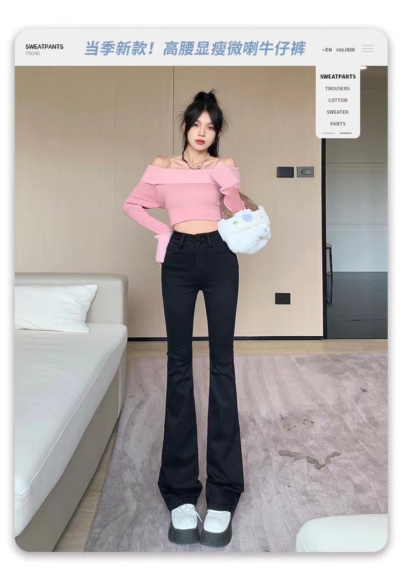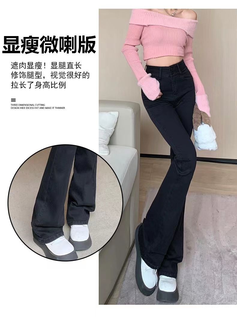 首页> 服装> 黑色微喇叭牛仔裤女2023年春秋季新款高腰弹力修身显瘦拖地长裤子
