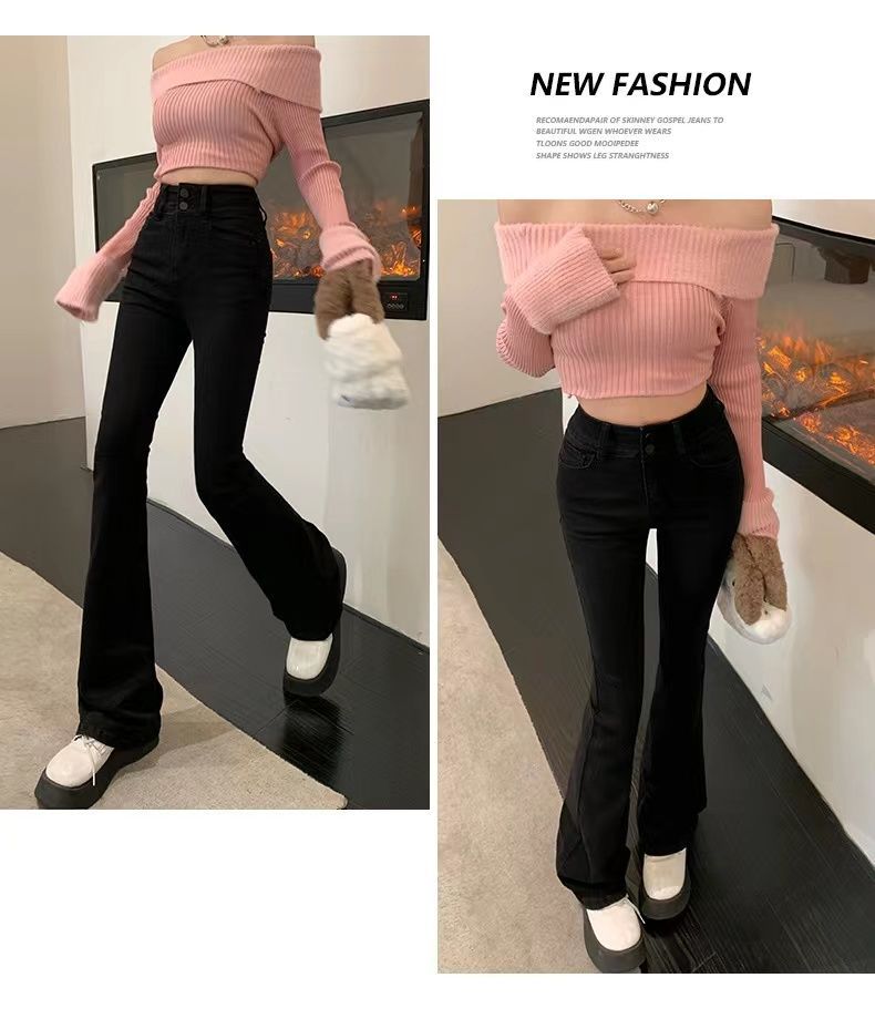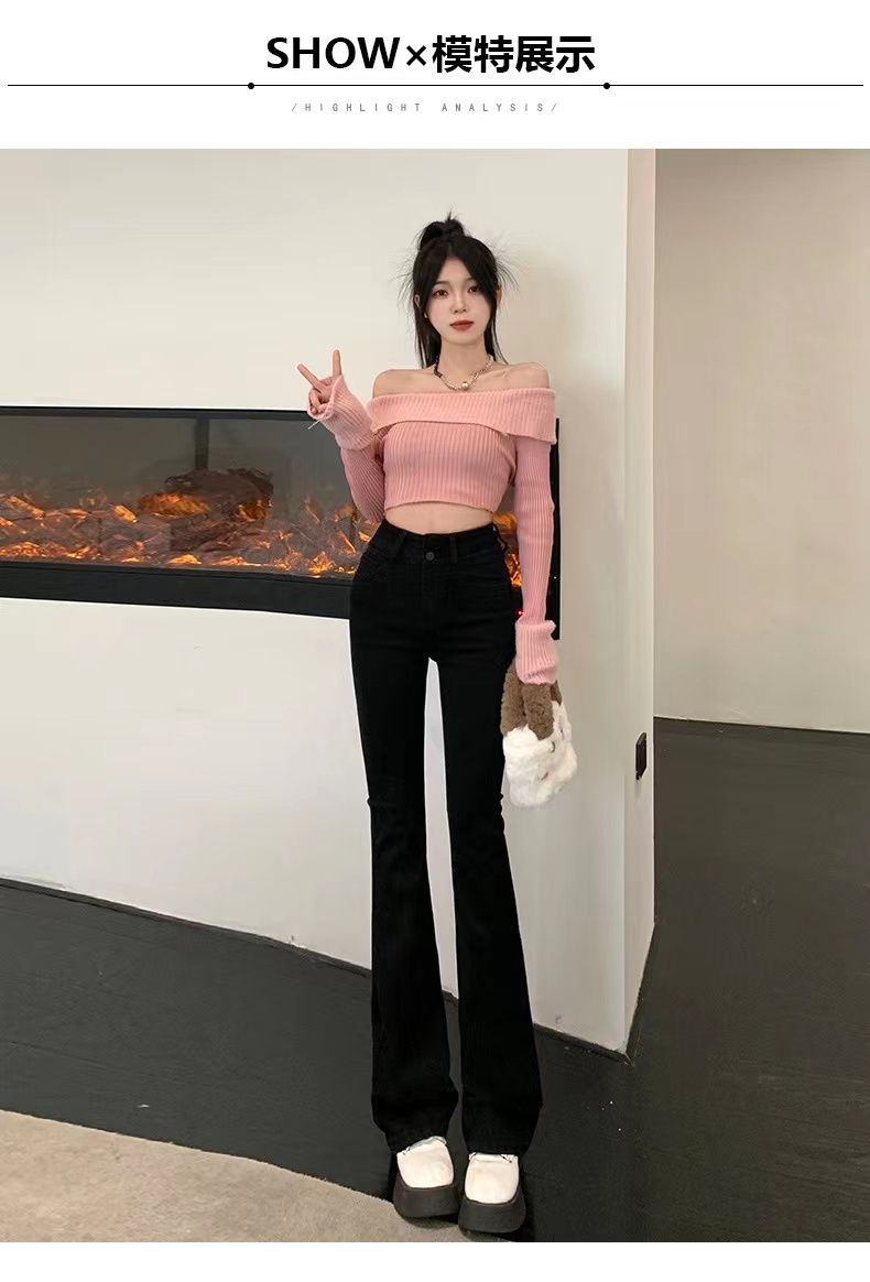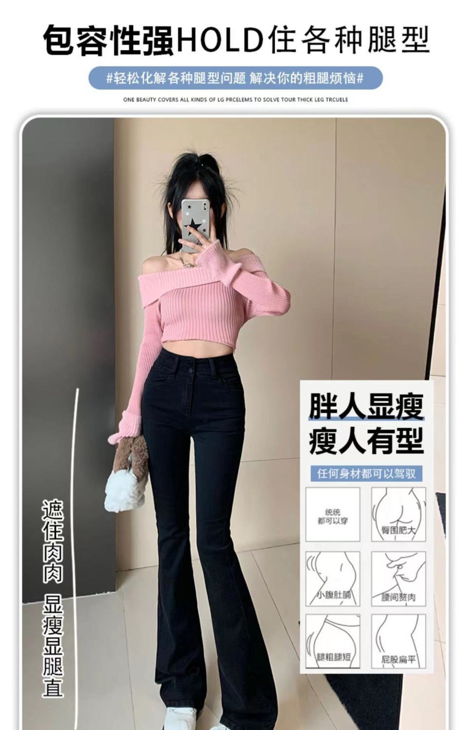 首页> 服装> 黑色微喇叭牛仔裤女2023年春秋季新款高腰弹力修身显瘦拖地长裤子
