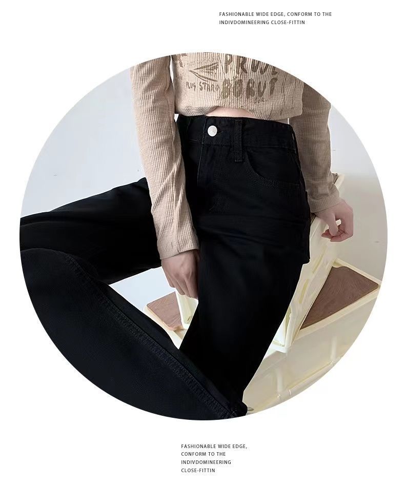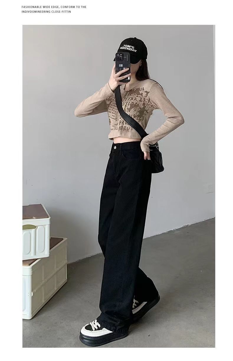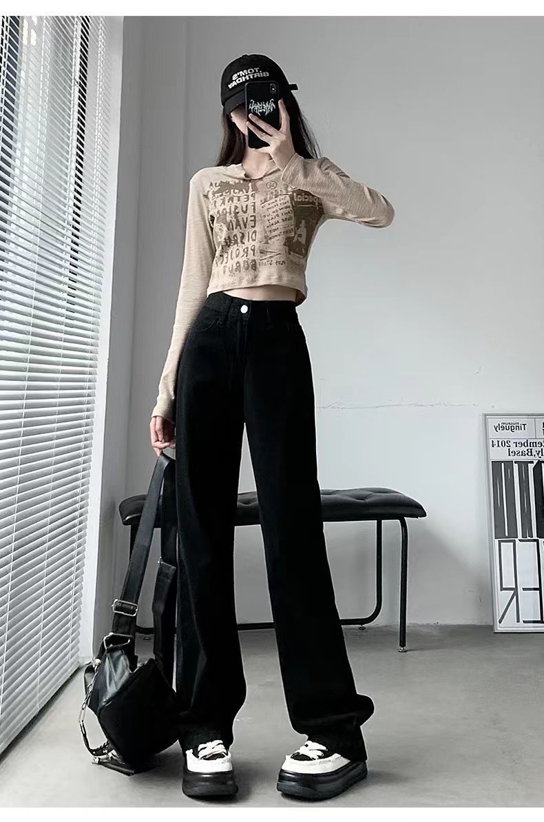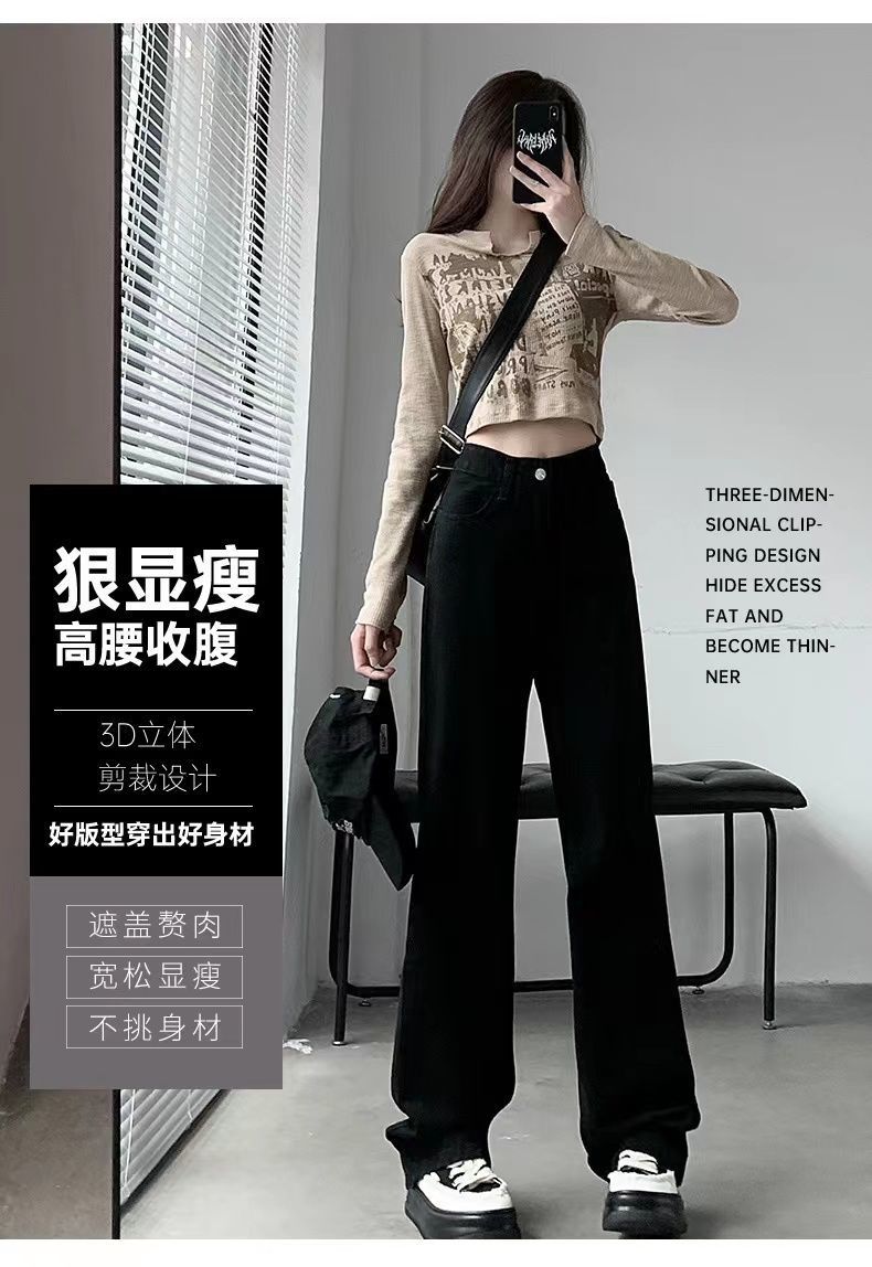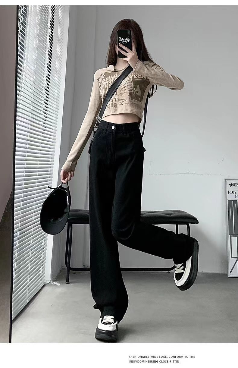 直筒牛仔裤女高腰显瘦春秋季2023年新款小个子宽松阔腿拖地长裤子