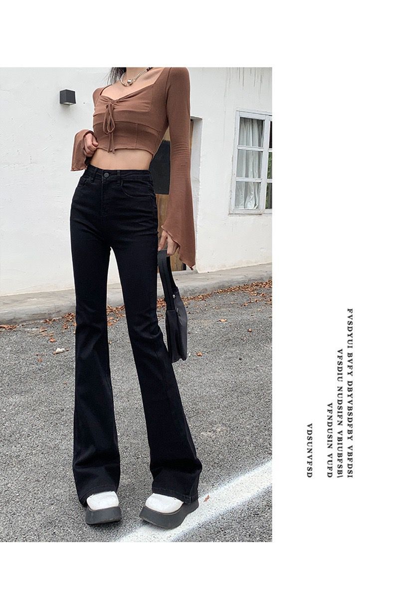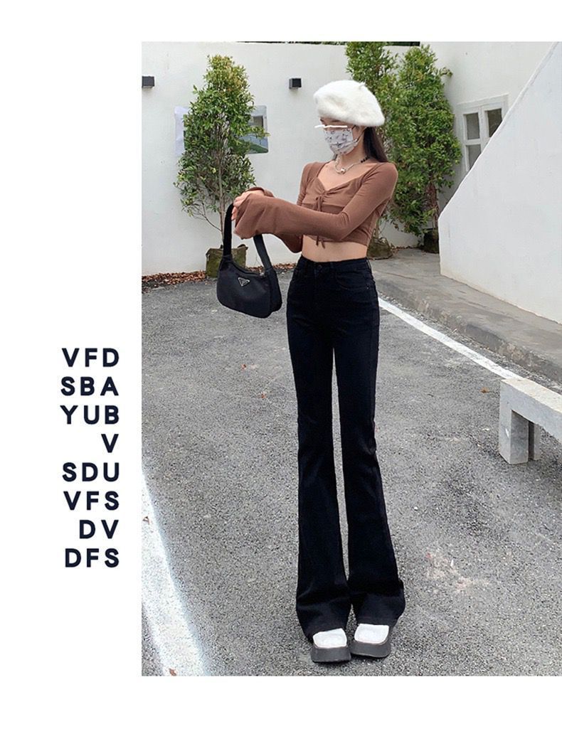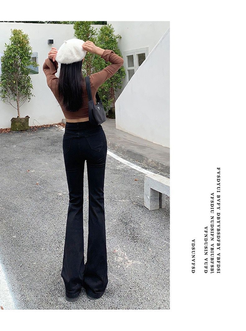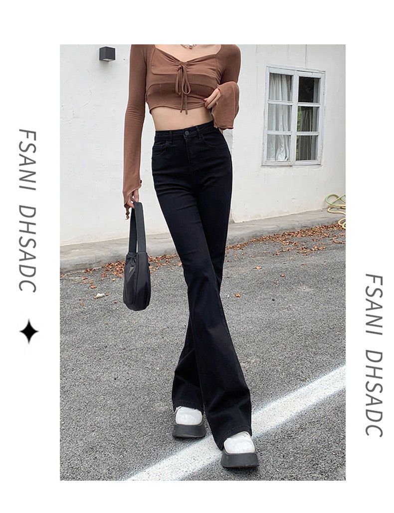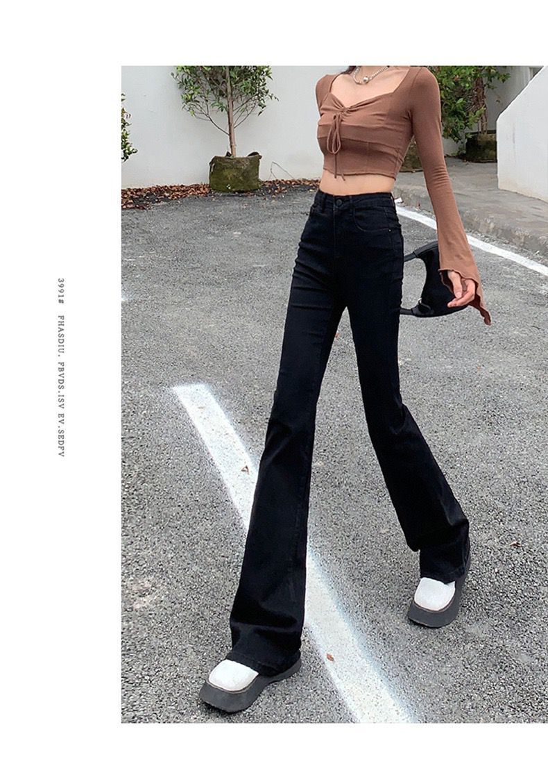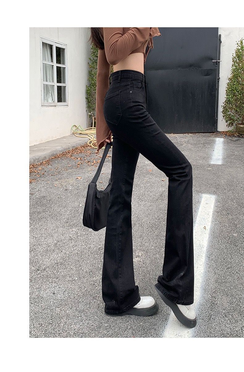 黑色高腰显瘦牛仔裤女2023年春秋季新款弹力修身百搭微喇叭拖地裤