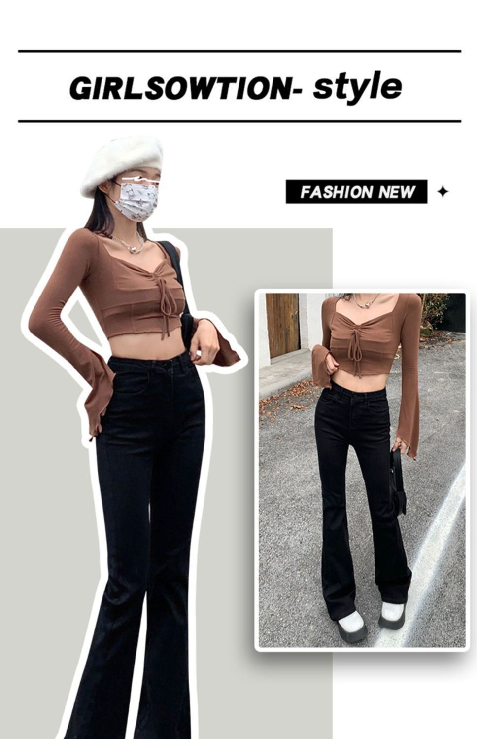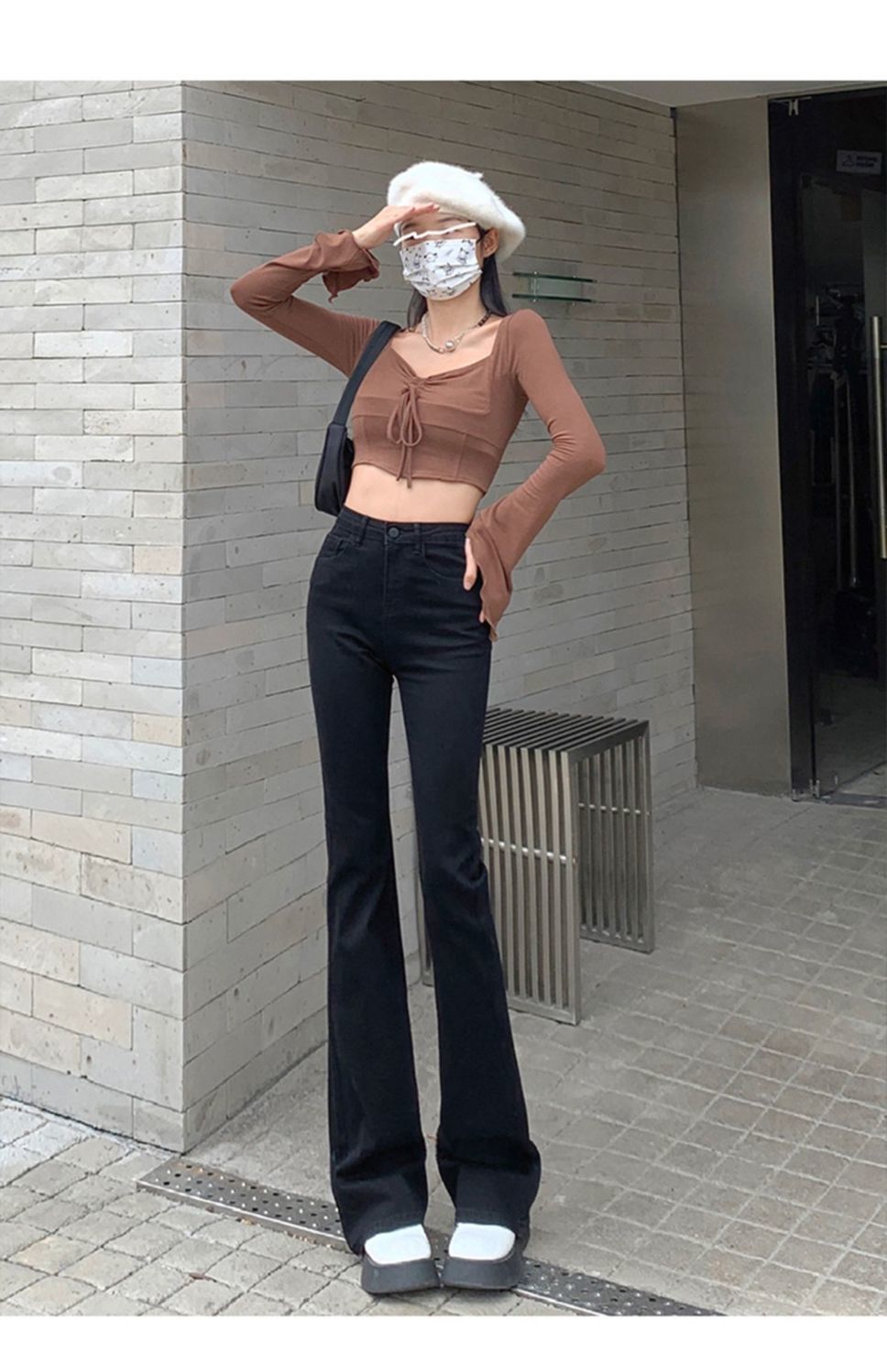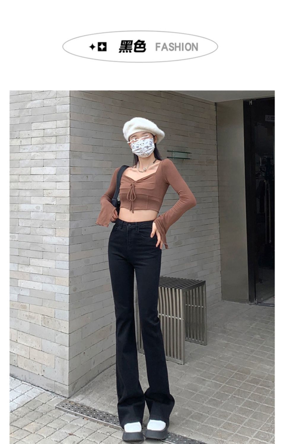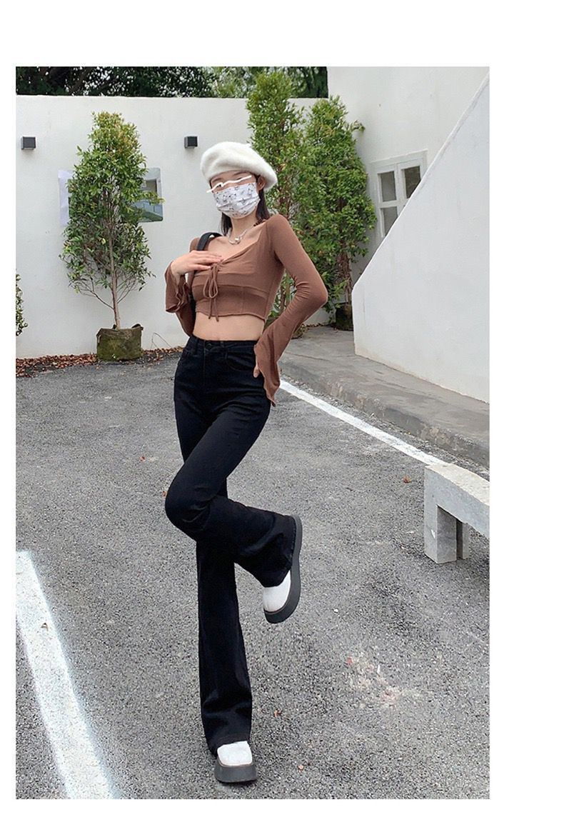 黑色高腰显瘦牛仔裤女2023年春秋季新款弹力修身百搭微喇叭拖地裤