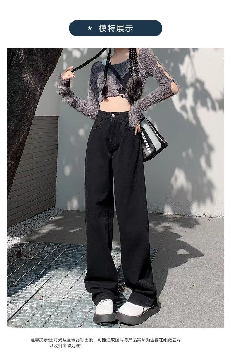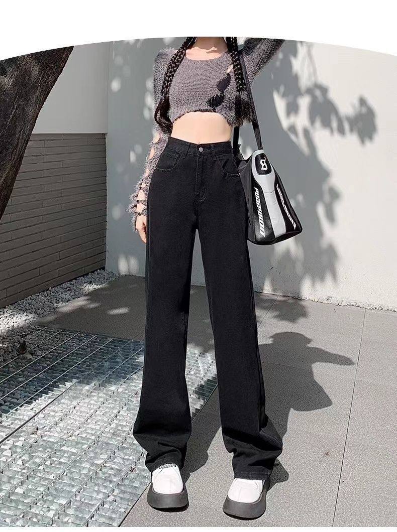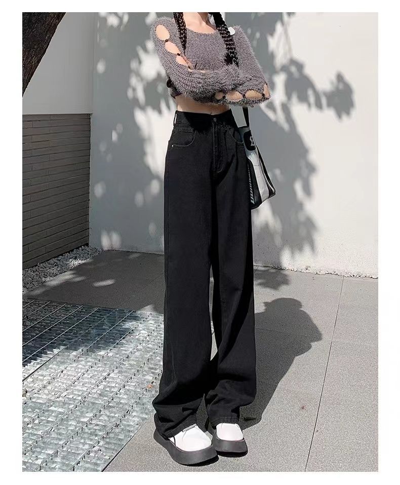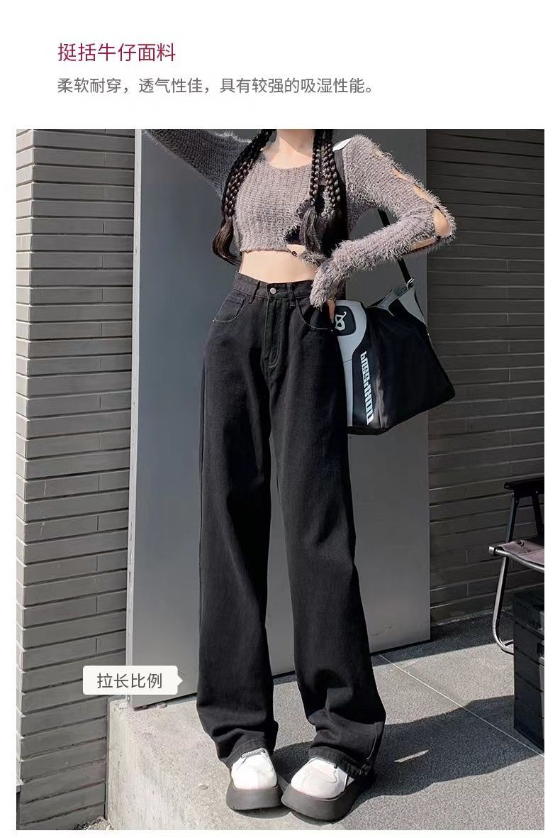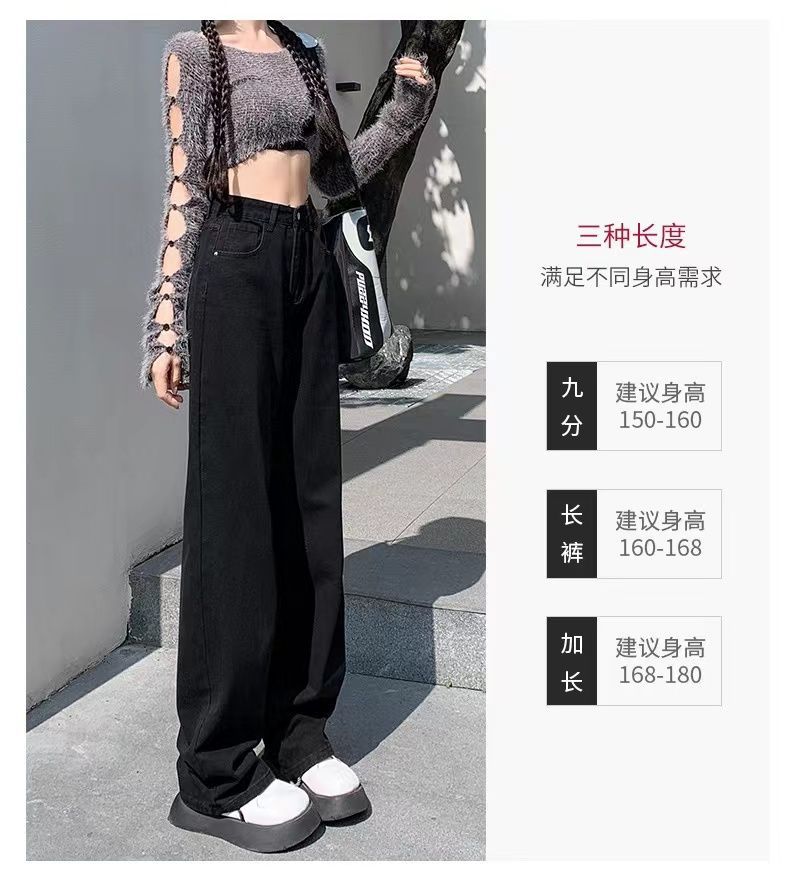 首页> 服装> 黑色阔腿裤垂感窄版宽松2023显瘦牛仔裤女高腰百搭拖地直筒长裤潮