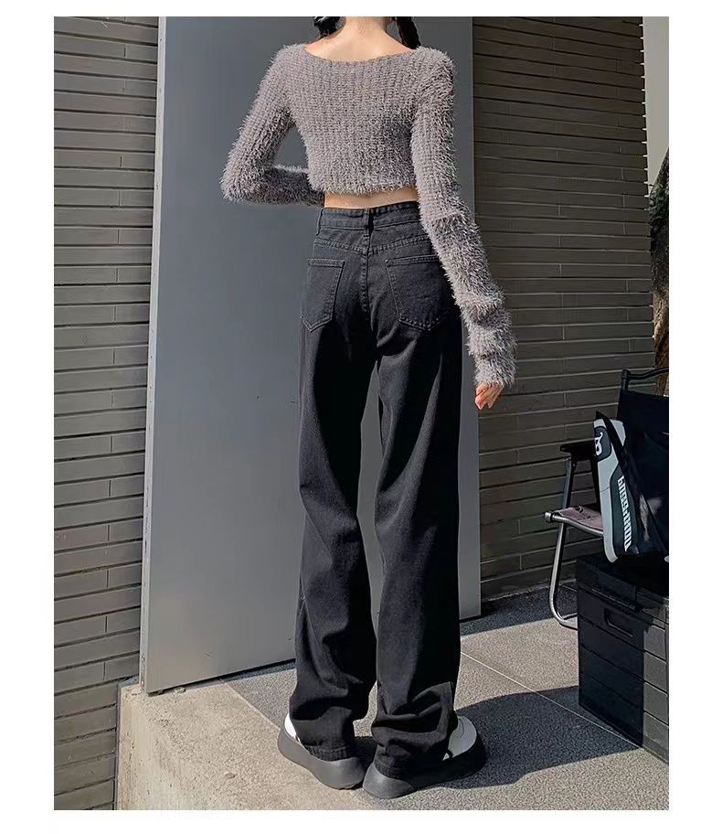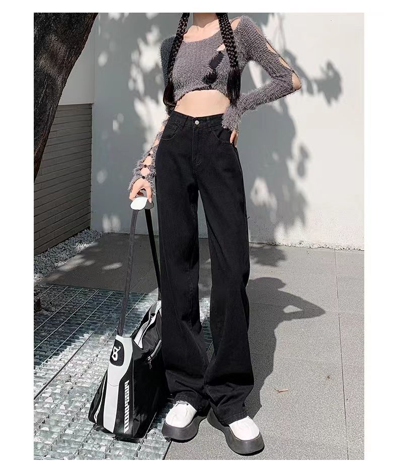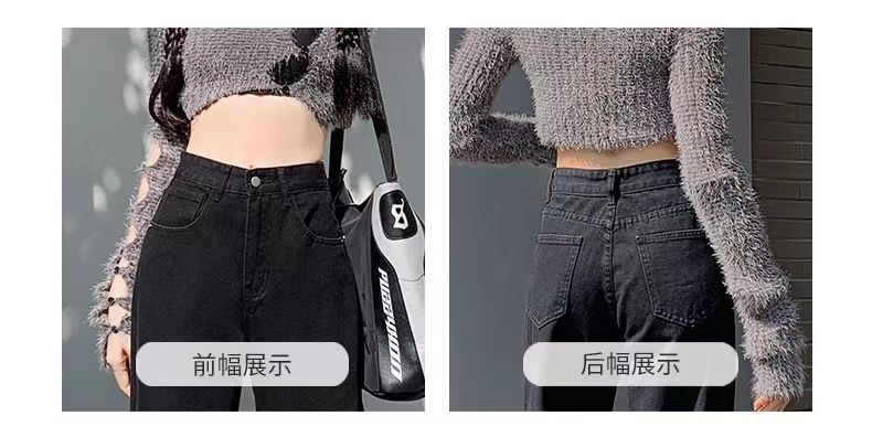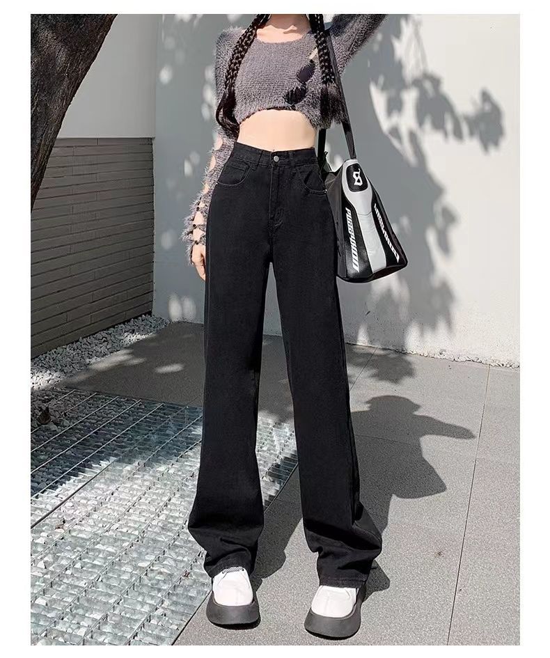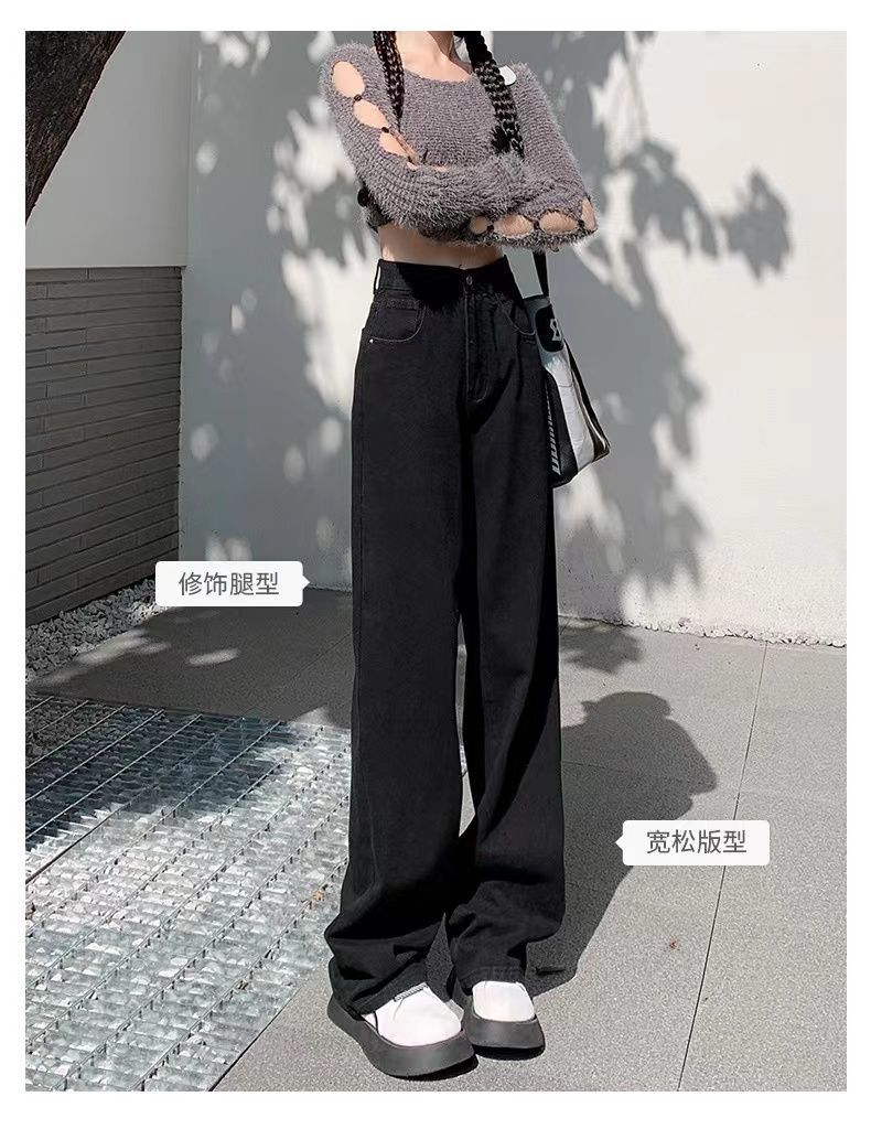 首页> 服装> 黑色阔腿裤垂感窄版宽松2023显瘦牛仔裤女高腰百搭拖地直筒长裤潮