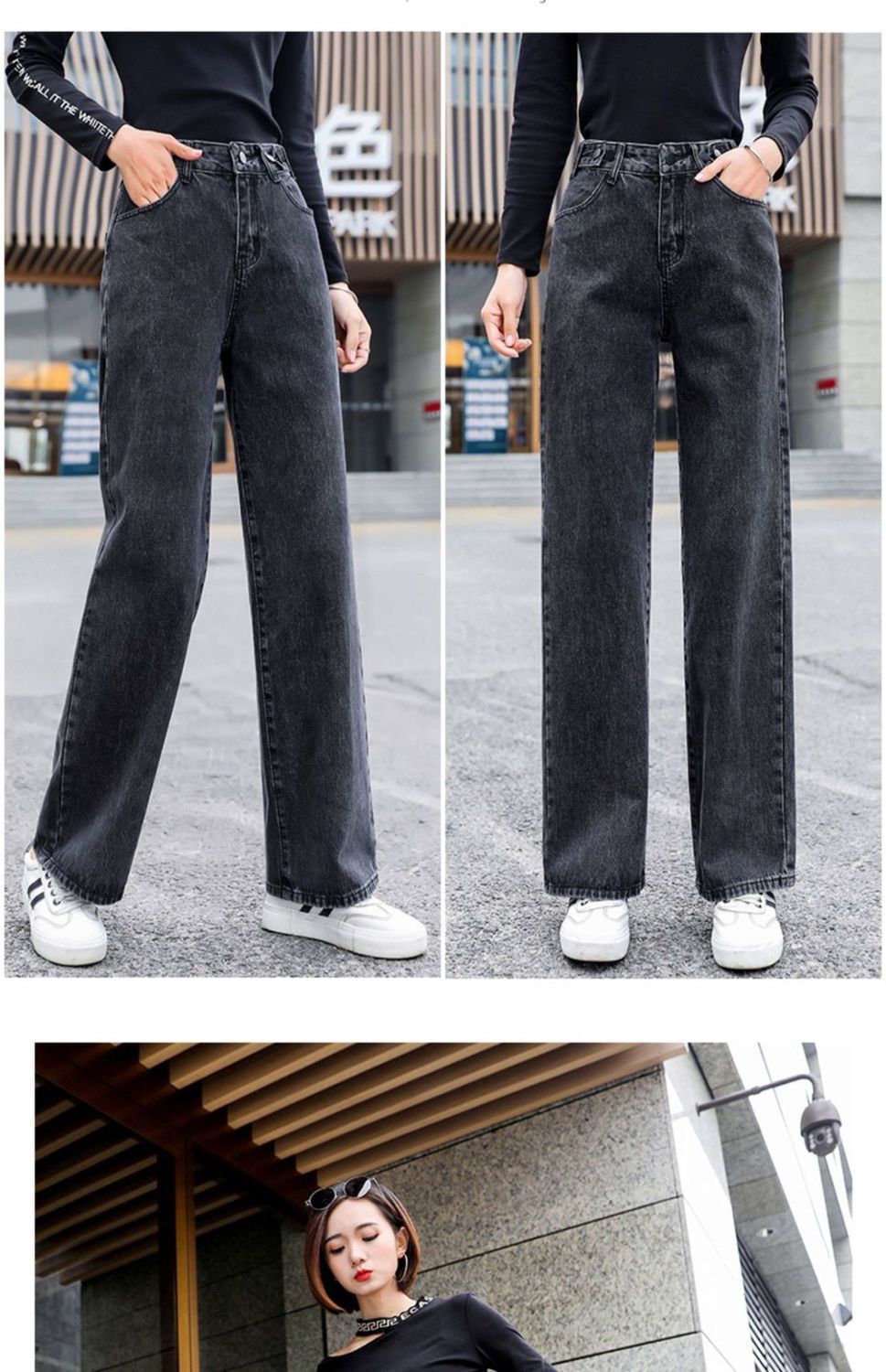 首页> 服装> 黑灰色阔腿牛仔裤女春秋季2023年新款高腰小个子宽松直筒拖地裤子