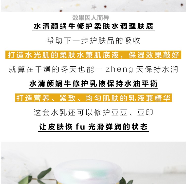 谜尚 水清颜蜗牛修护礼盒柔肤水乳液面霜洁面洗面奶睡眠面膜护肤品套装女补水保湿蜗牛精华男女化妆品