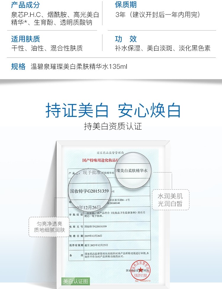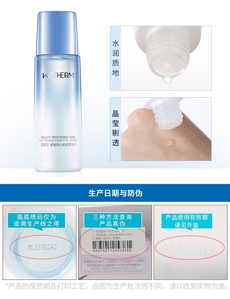 首页> 化妆品> 温碧泉(WETHERM)爽肤水女提亮肤色祛斑补水保湿 烟酰胺水男女适用