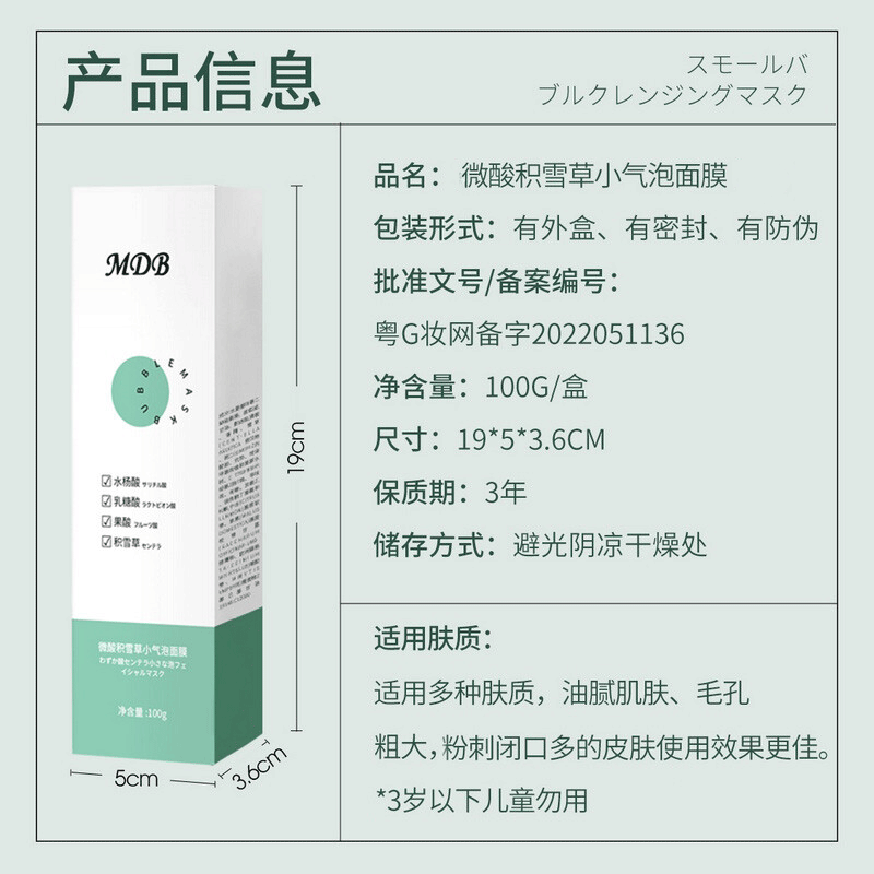 首页> 化妆品> MDB 【现货速发】 积雪草小气泡面膜mdb自发泡收缩毛孔控油去嘿头面膜女
