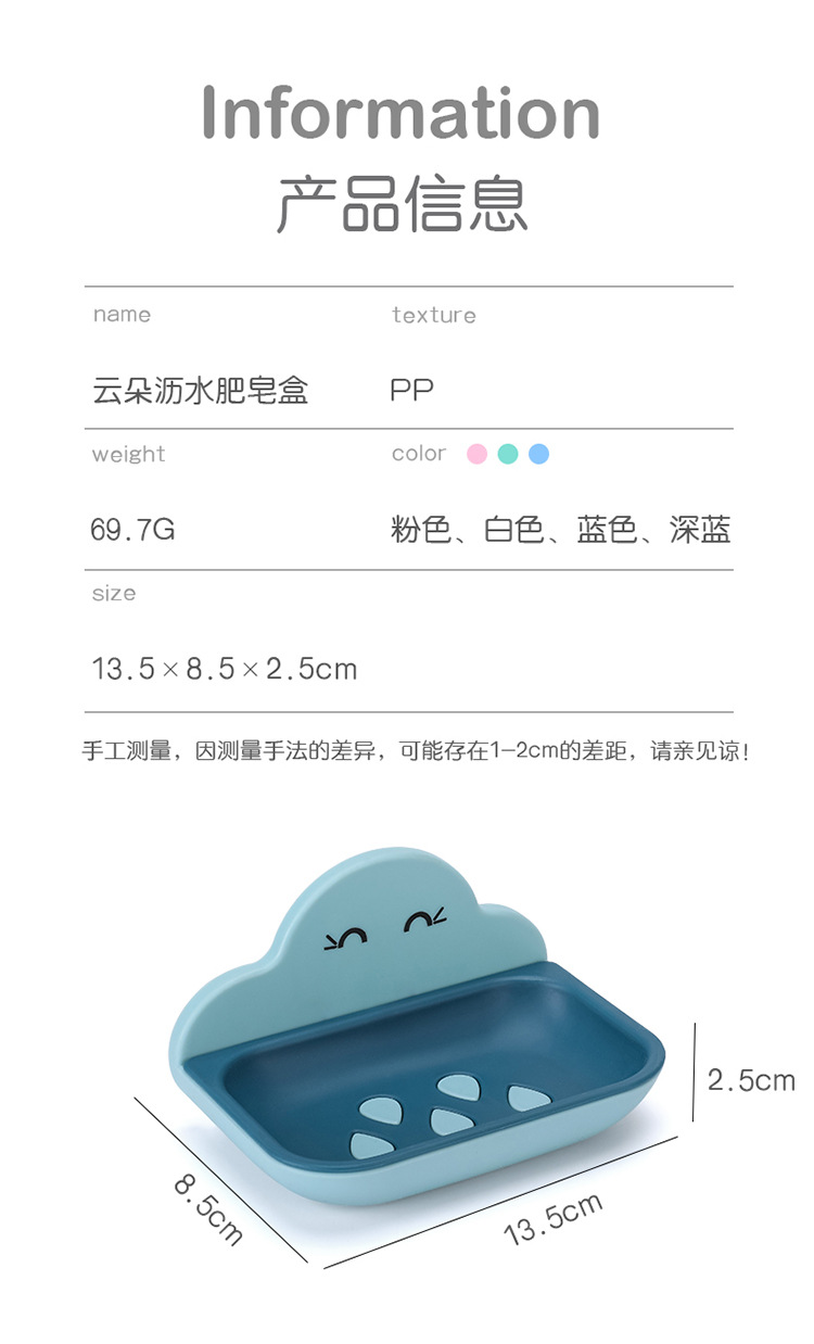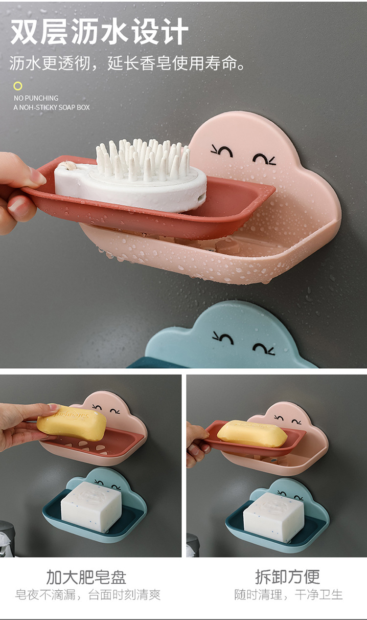 云朵肥皂盒卫生间创意置物架壁挂浴室厕所洗手间免打孔双层沥水