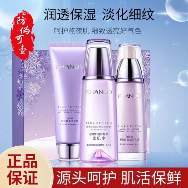 自然堂(CHANDO) 凝时鲜颜护肤品套装淡化细纹补水保湿提拉紧致抗皱洗面奶水乳精华面霜化妆品