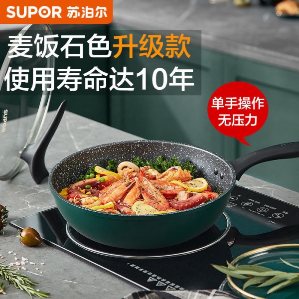 适用苏泊尔麦饭石色不粘锅家用电磁炉燃气燃气适用炒菜平底锅