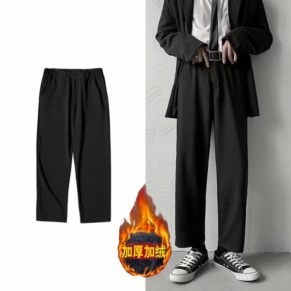 秋冬裤子男休闲西装裤宽松直筒韩版潮流百搭加绒阔腿长裤垂感西裤