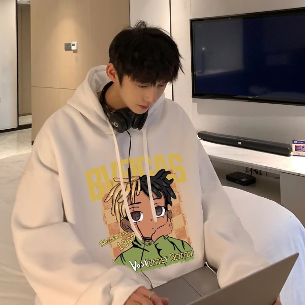 美式复古连帽卫衣男春秋季加绒宽松潮流ins港风衣服oversize外套
