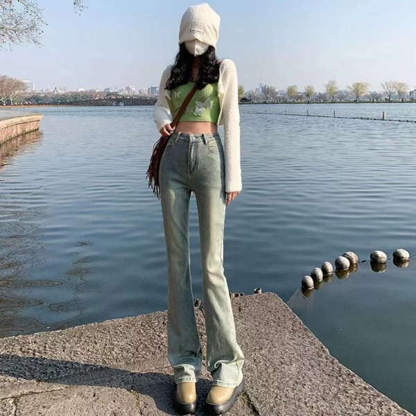 微喇叭牛仔裤女春秋高腰显瘦垂感直筒阔腿裤2023新款小个子拖地裤