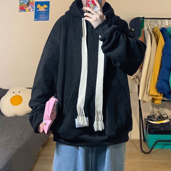 织带抽绳卫衣男春秋季新款连帽宽松上衣ins潮牌港风加绒百搭外套