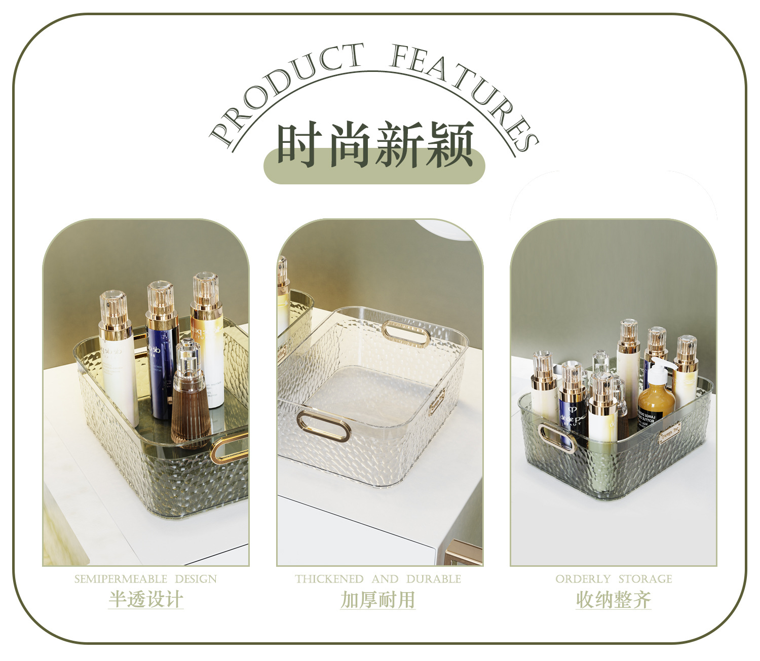 轻奢化家用亚克力透明收纳盒护肤品面膜收纳筐梳妆台杂物整理盒