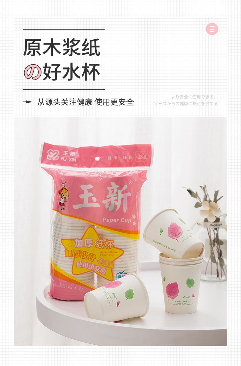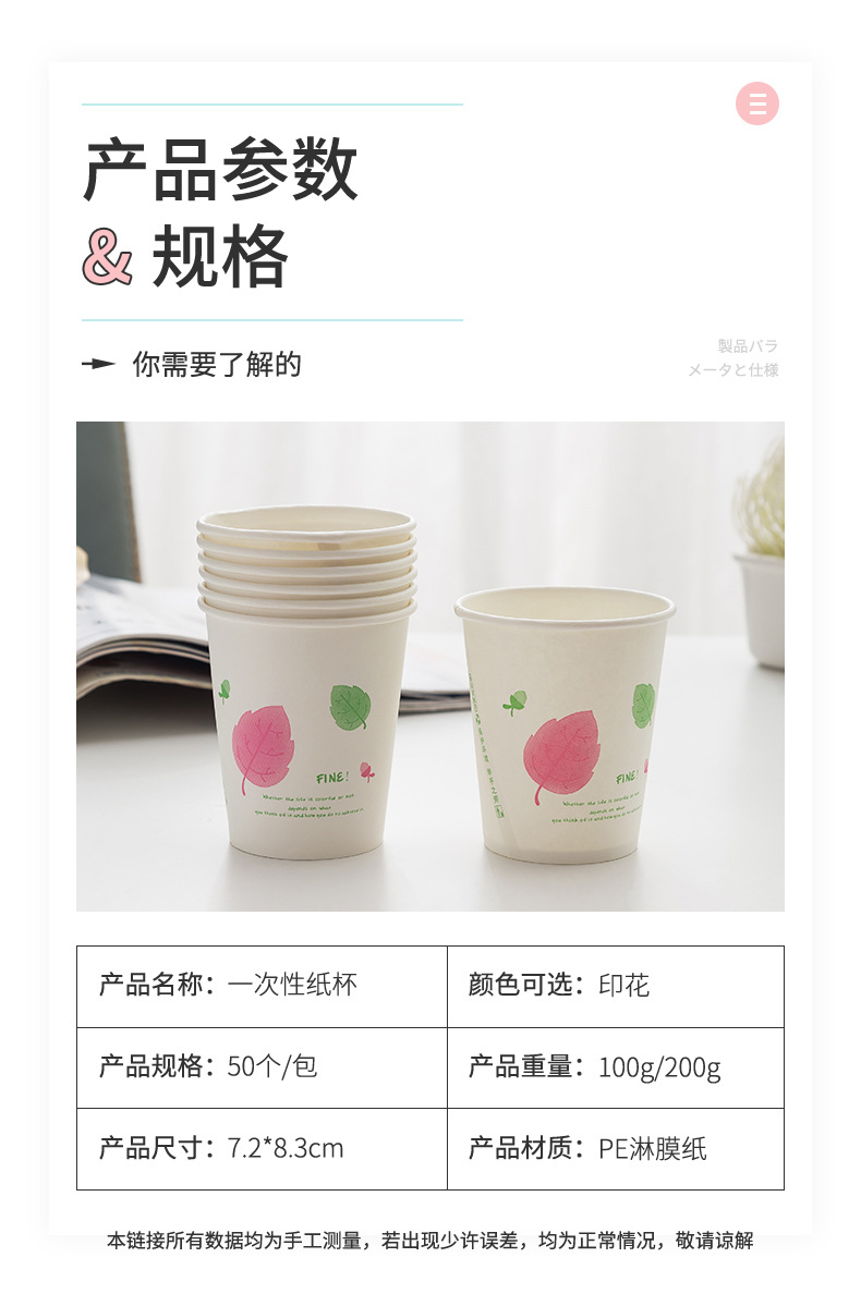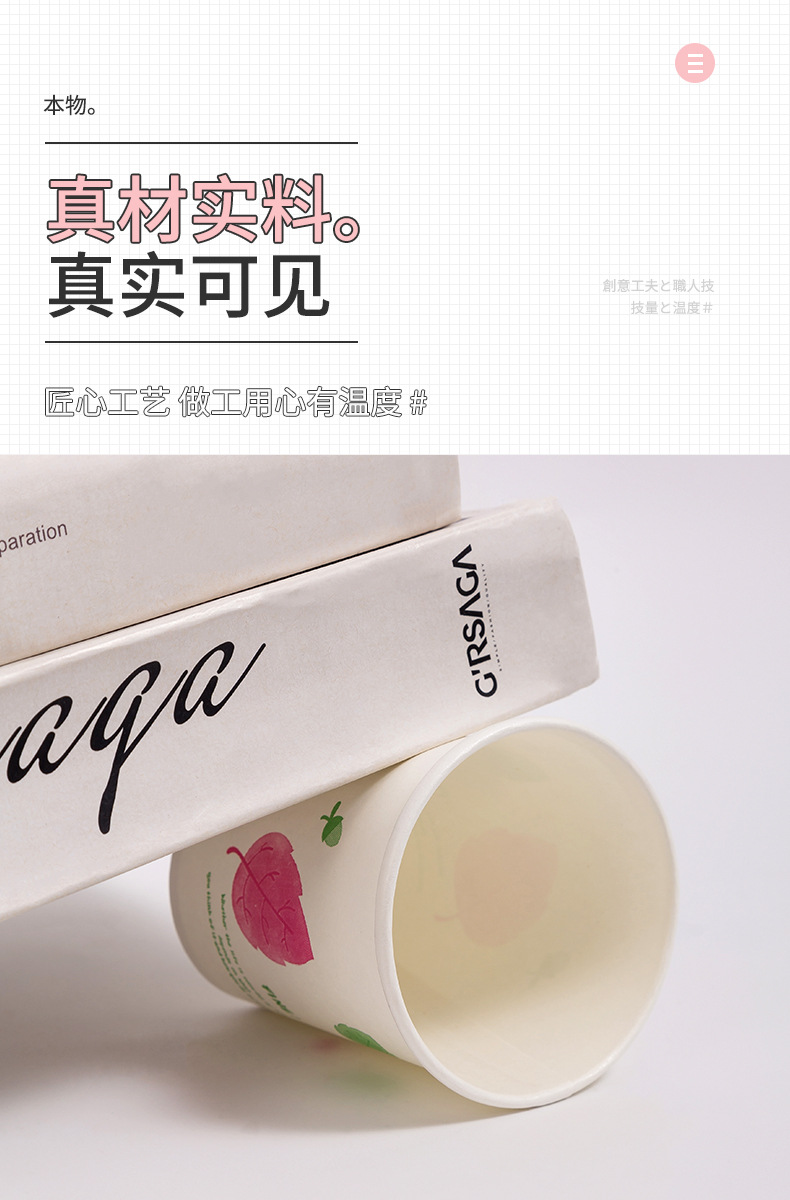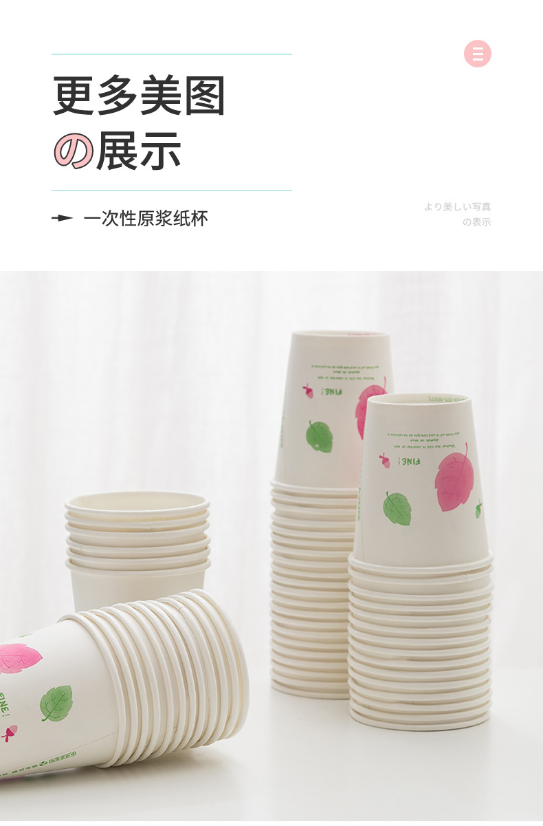 一次性纸杯50只装加厚250ml原生木浆水杯咖啡果汁奶茶热饮杯批发