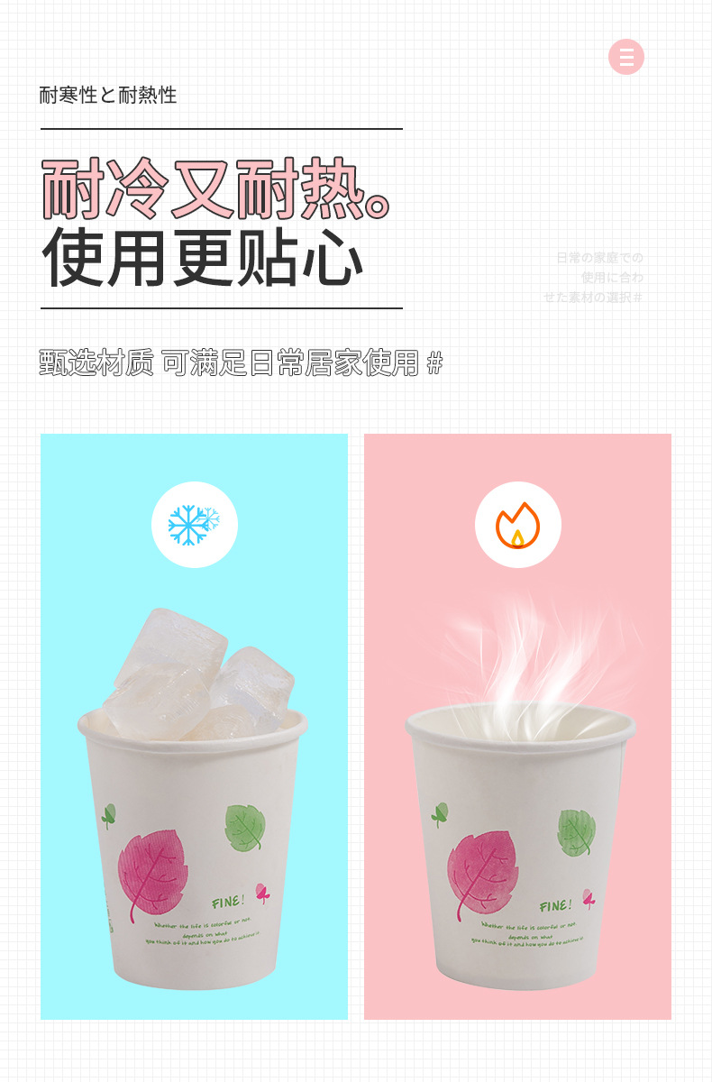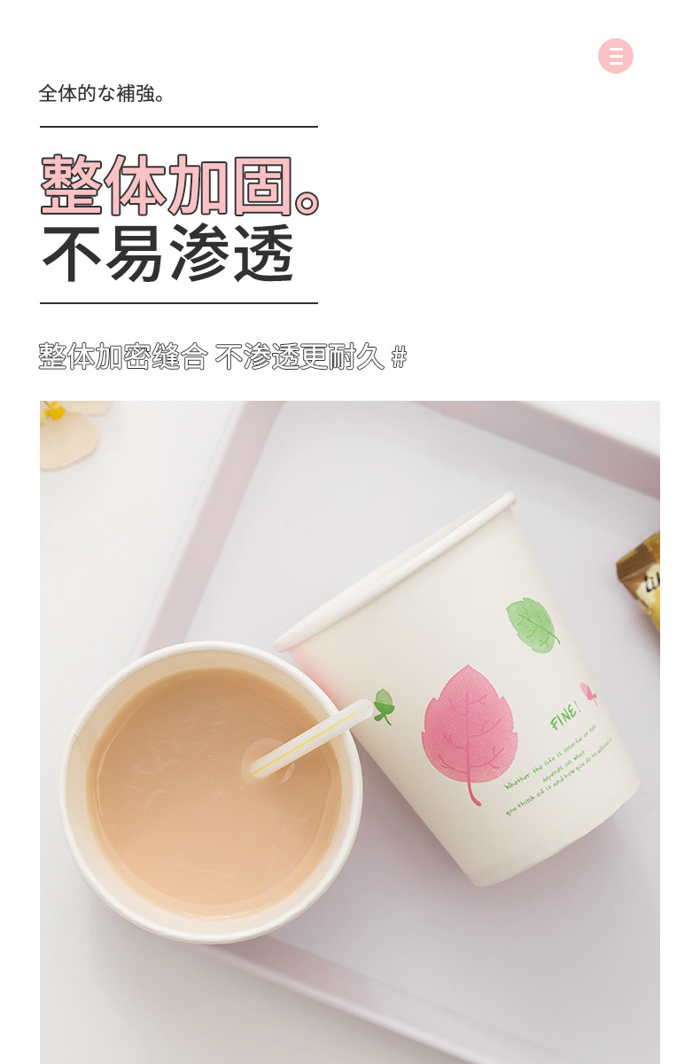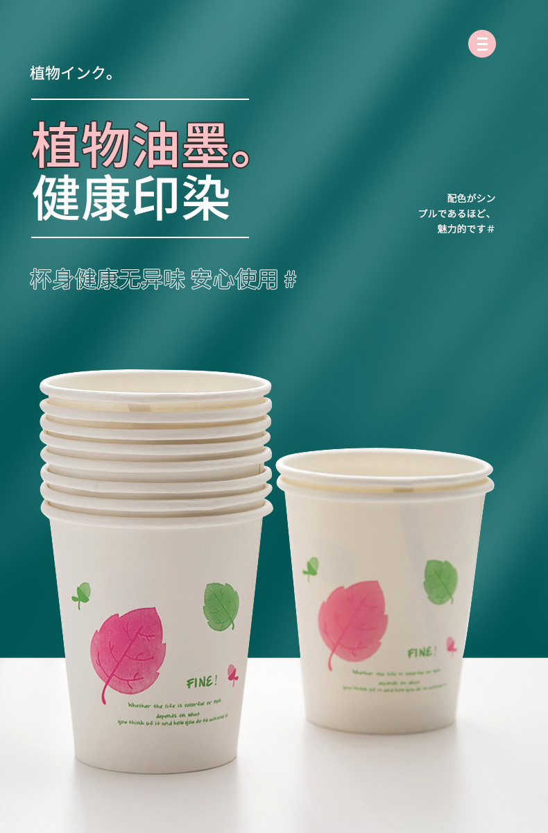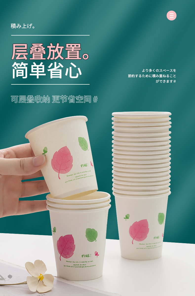 一次性纸杯50只装加厚250ml原生木浆水杯咖啡果汁奶茶热饮杯批发